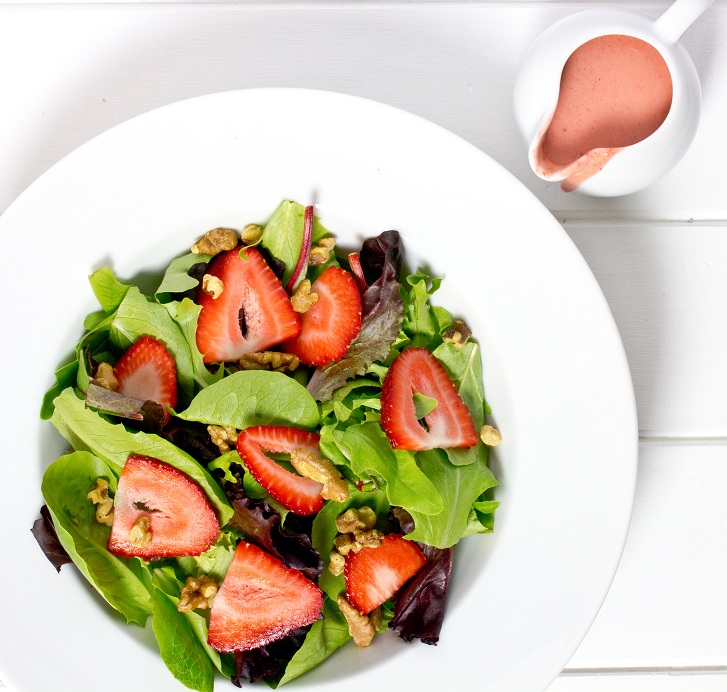Salad with fresh strawberry dressing