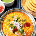 Dal Pakwan is a popular Sindhi breakfast recipe made with lightly spiced chana dal and deep fried crisp flatbread called pakwan.