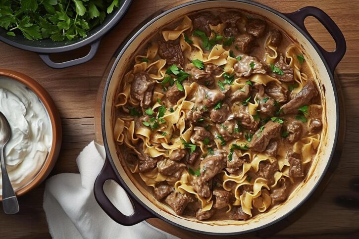 Delight in the creamy and savory flavors of Dutch oven beef stroganoff.