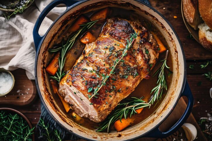 Savor the succulence of Dutch oven-cooked pork loin.