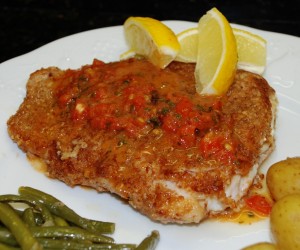 Sautéed fresh Grouper encrusted with freshly ground Georgia pecans then topped with a tomato, lemon, white wine and fresh herb coulis! You’ll be surprised at how the nutty crust flavor marries with the savory tomato coulis creating a tasting experience you’ll want again and again.