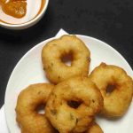 Medu vada iare fried fritters made from split black gram and are popular breakfast served with sambar and coconut chutney.