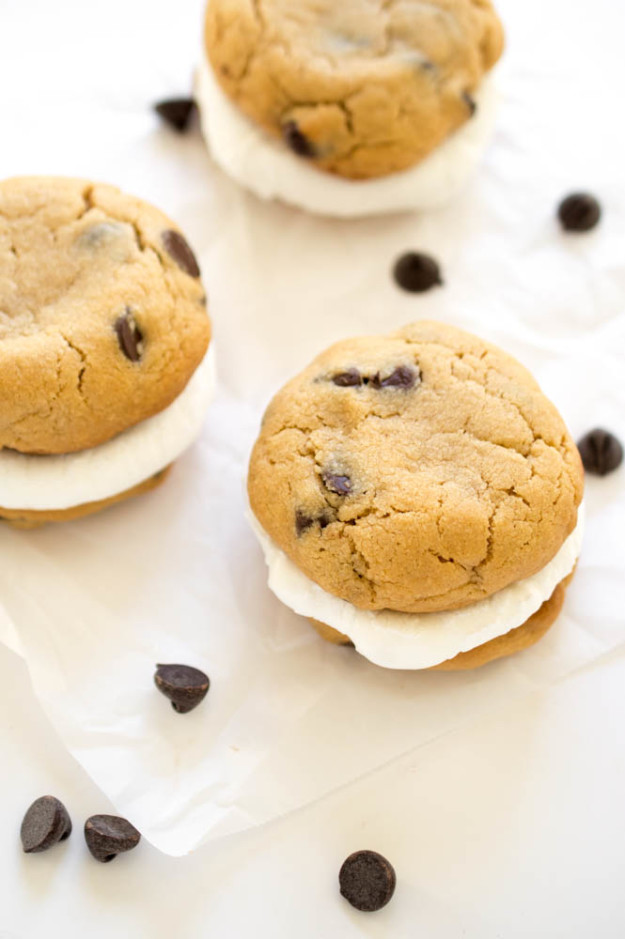 chocolate chips cookie dessert marshmallow peanut butter peanut butter cookies recipe sandwich cookies semi sweet chocolate smores